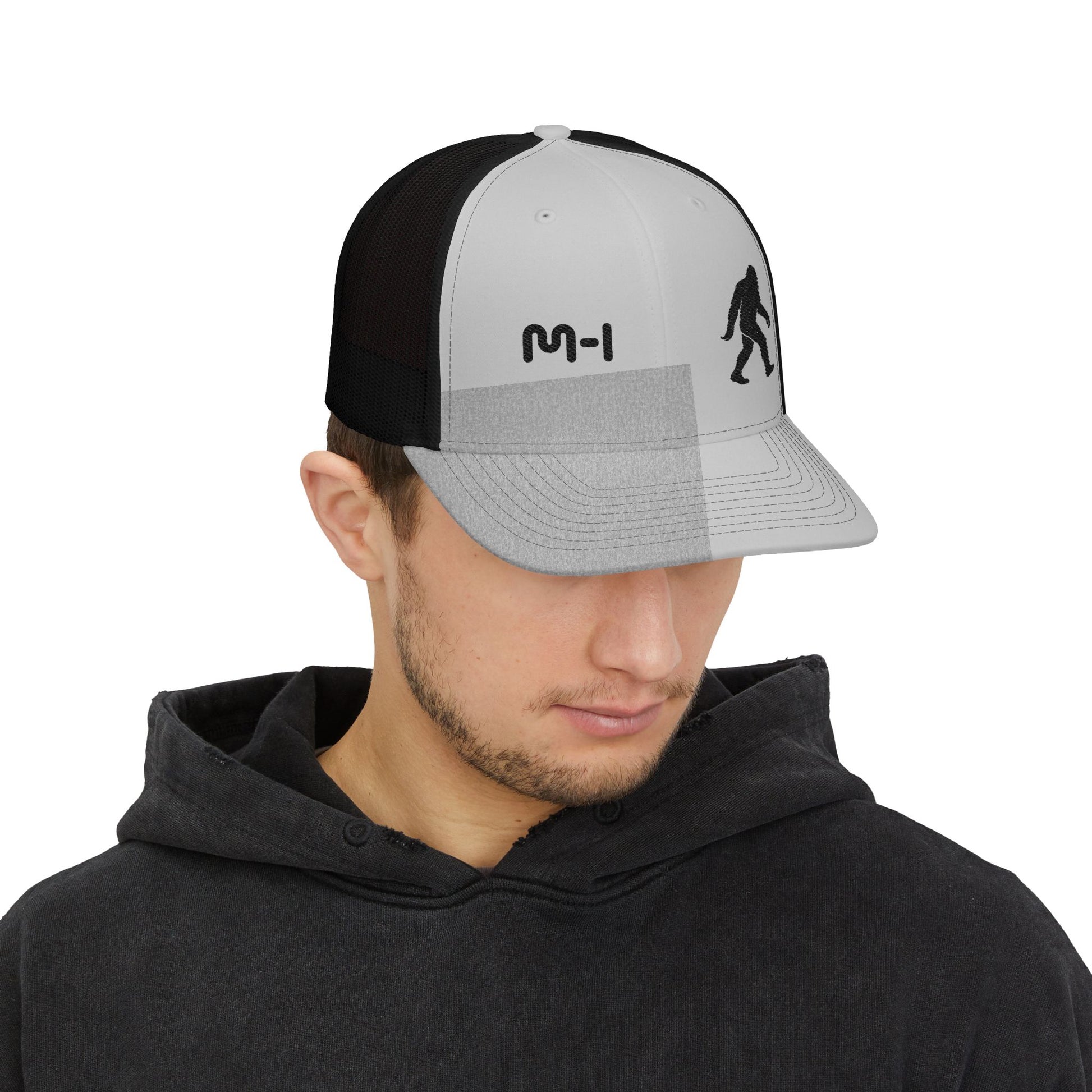 This mid-profile trucker cap brings quiet, outdoorsy charm to everyday wear. Soft gray fabric on the front contrasts with crisp white mesh at the back for breathable comfort on warm days. Subtle embroidered details—an understated “M-1” and a minimalist Sasquatch outline—give the hat personality without shouting. The pre-curved visor and cotton sweatband keep the fit comfortable during hikes, porch hangs, or coffee runs. Adjustable snap closure ensures a secure fit, while the structured six-panel build keeps the shape crisp whether you’re on the trail or running errands. Wear it when you want a low-key nod to adventure and a hat that moves easily from morning light to late-afternoon campfire smoke.